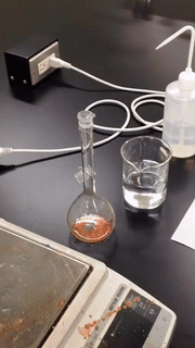 全試薬を採取後精製水をメスフラスコ(メスフラスコの